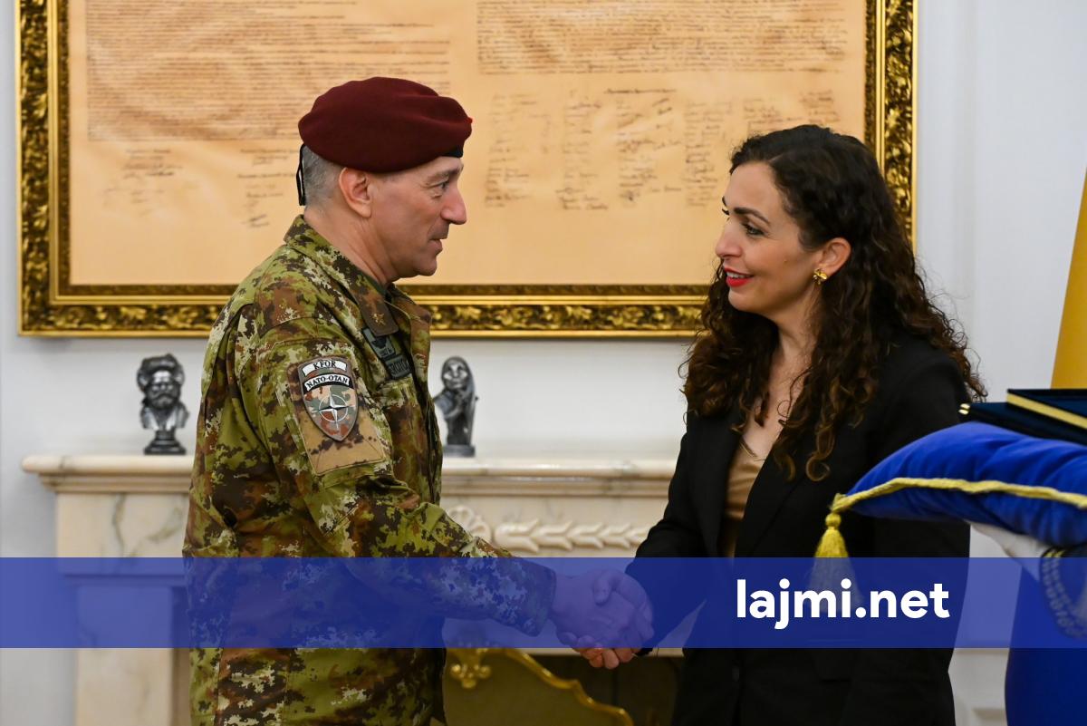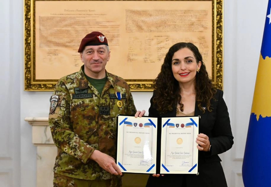 Presidentja e Republikës së Kosovës, Vjosa Osmani, ka dekoruar komandantin e KFOR-it, gjeneralmajor Enrico Barduani, me Medaljen Presidenciale Ushtarake, në shenjë vlerësimi për kontributin e tij në ruajtjen...