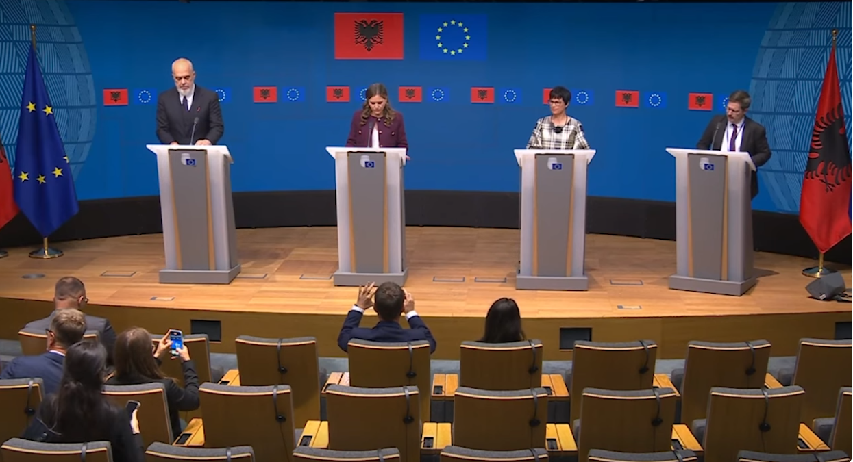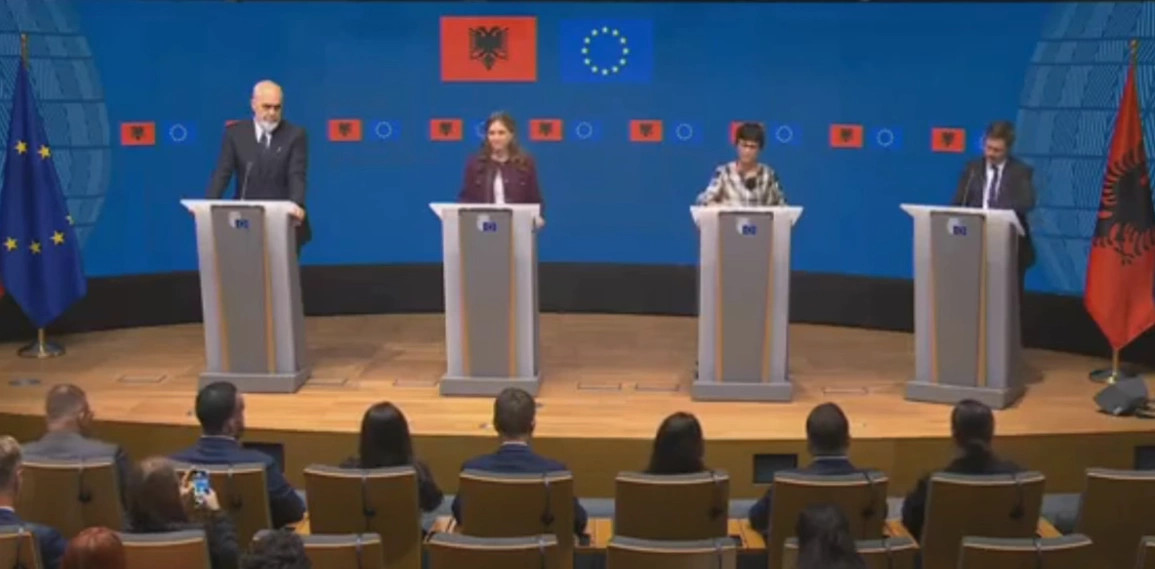 Komisionerja e BE për Zgjerim, Marta Kos në një konferencë me kryeministrin Edi Rama në Bruksel tha se ecuria e Shqipërisë në rrugën evropiane është mbresëlënëse. “Shpejtësia e Shqipërisë është mbresëlënëse....