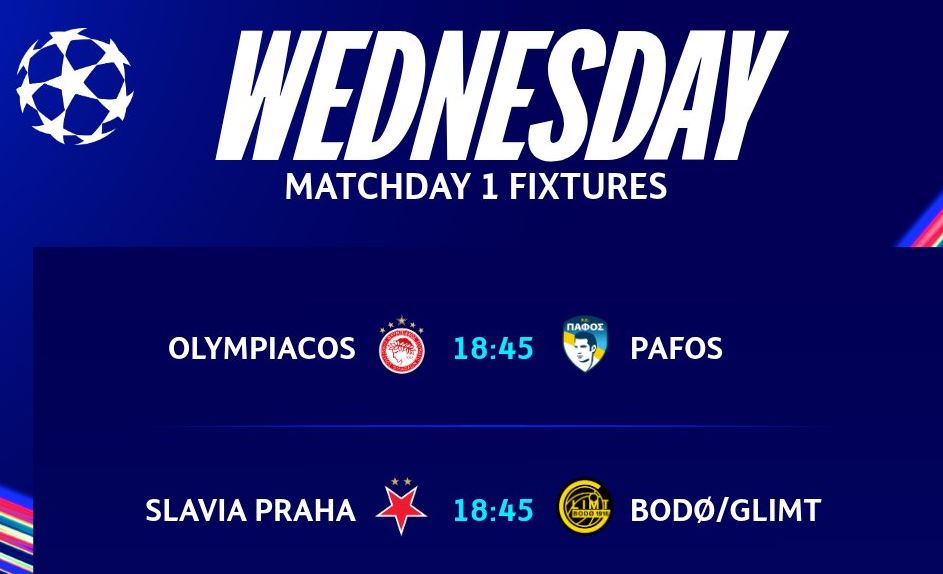 Melodia e Champions League do dëgjohet edhe këtë të mërkurë në gjashtë stadiume evropiane. Duke nisur nga ora 18:45 në Athinë, Olympiacos pret debutuesit e Pafos FC, me qipriotët që janë befasia e madhe...
