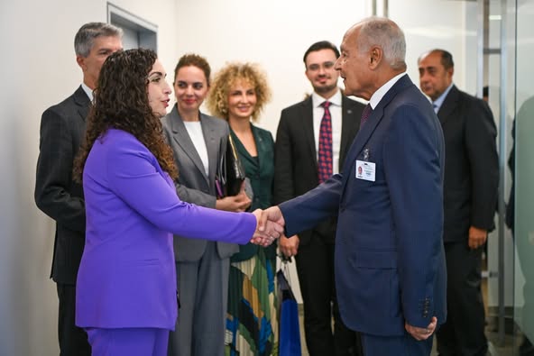 Presidentja e vendit, Vjosa Osmani, gjatë vizitës në Shtetet e Bashkuara të Amerikës, ka takuar në New York Sekretarin e Përgjithshëm të Ligës Arabe, Ahmed Aboul Gheit.