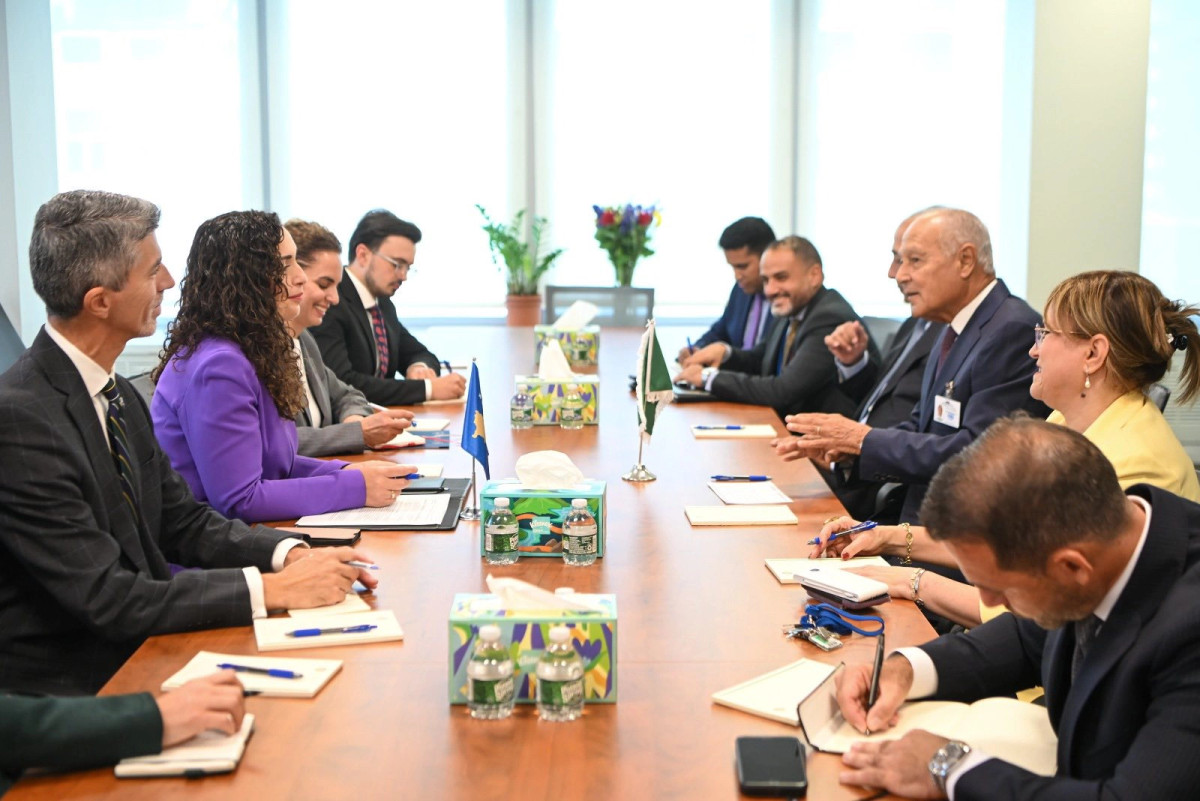 Presidentja Vjosa Osmani në New York ka zhvilluar një takim me Sekretarin e Përgjithshëm të Ligës Arabe, Ahmed Aboul Gheit. Në takim, Osmani theksoi rëndësinë e bashkëpunimit ndërmjet Kosovës dhe Ligës...