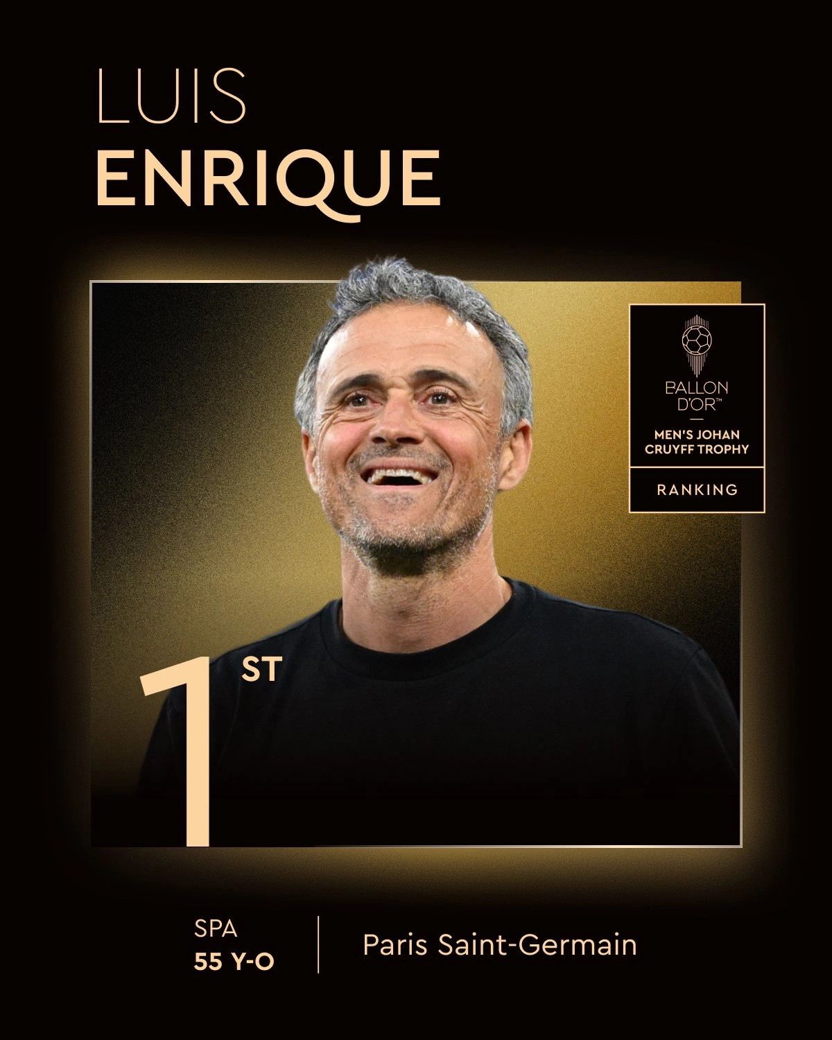 Kush tjetër mund ta kishte marrë çmimin Johan Cruyff për trajnerin më të mirë të sezonit? Luis Enrique e udhëhoqi PSG-në drejt titullit të parë të Ligës së Kampionëve në historinë e tyre, pa lënë pas dore...