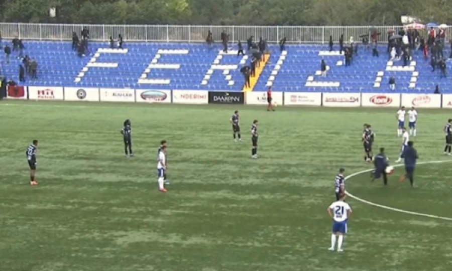 Ndeshja e Superligës së Kosovës mes Ferizajt dhe Prishtinës, është ndërprerë pas vetëm 10 minutash lojë për shkak të trazirave jashtë stadiumit, për të vazhduar pastaj. Para fillimit të sfidës, tifozët...