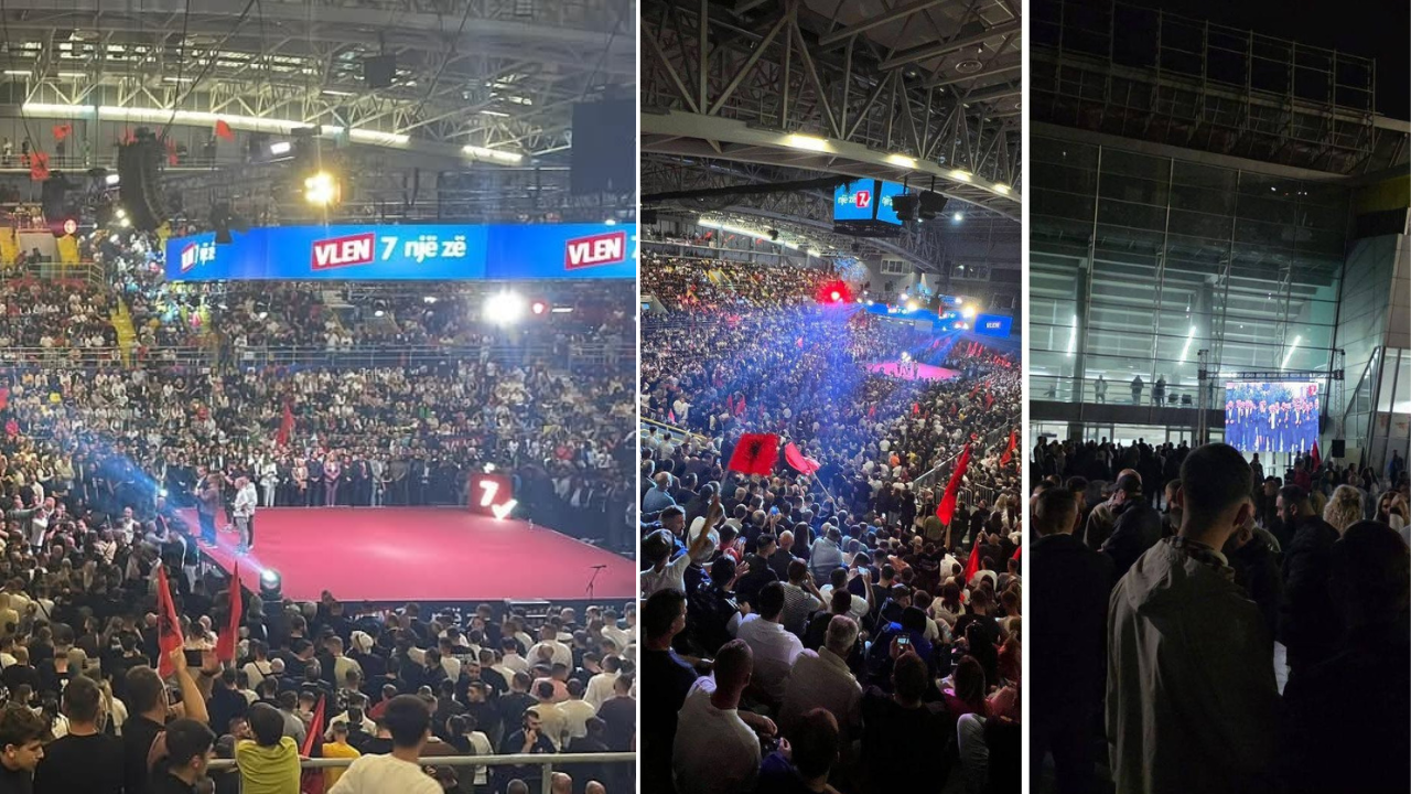 Interesimi i madh për konventën e koalicionit VLEN bëri që shumë simpatizantë të mos gjenin vend në sallë. Organizatorët u detyruan të vendosin ekrane LED jashtë objektit, në mënyrë që edhe ata që mbetën...