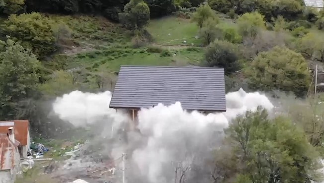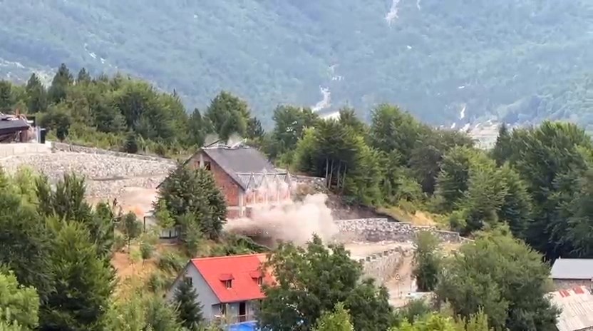 Është publikuar momenti kur shpërthen godina 3-katëshe në Theth gjatë aksionit të rinisjes së prishjes së objekteve që po zhvillohet këtë të shtunë. Në video shihet sesi godina bëhet me shpërthim të komanduar nga IKMT.