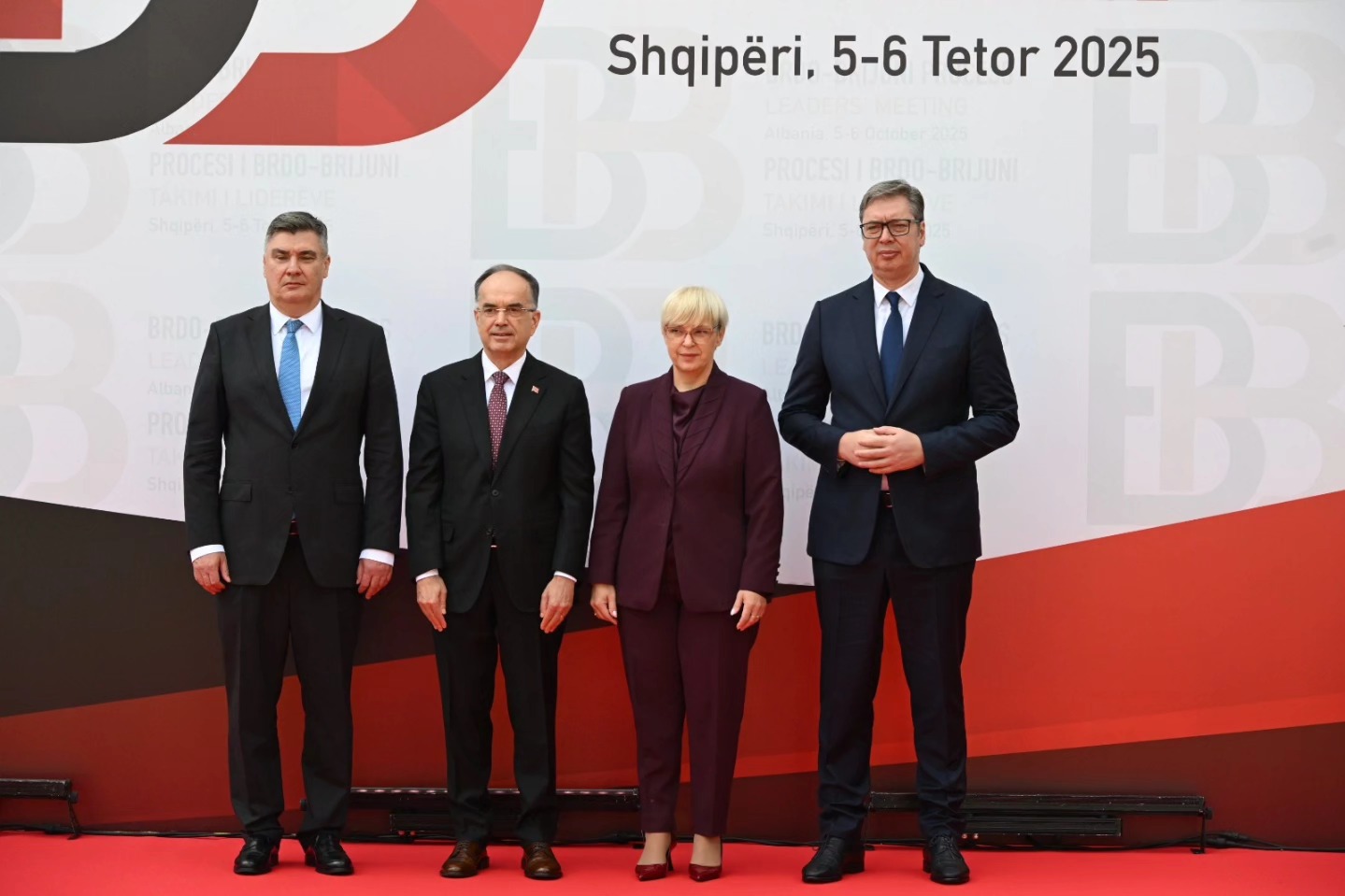 Presidenti i Shqipërisë, Bajram Begaj, bashkë me presidenten e Sllovenisë Natasha Pirc Musar e presidentin e Kroacisë, Zoran Milanoviç, dy prej nismëtarëve të samitit po presin liderët e rajonit në nisje...