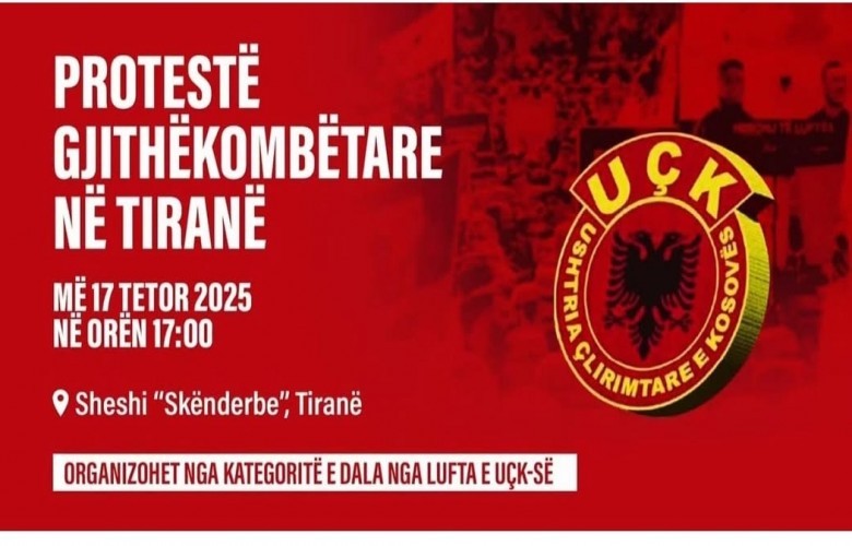 Të premten, më 17 tetor, në orën 17:00, në sheshin “Skënderbej” në Tiranë do të zhvillohet një protestë gjithëkombëtare në mbështetje të ish-krerëve të Ushtrisë Çlirimtare të Kosovës (UÇK), të cilët ndodhen...
