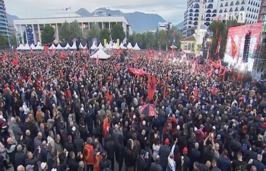 Kryeministri Edi Rama, i cili mungoi në protestën për liderët e UÇK-së në Tiranë, ka ndarë pamje nga sheshi “Skënderbej”, ku u mblodhën mijëra qytetarë nga të gjitha trevat shqiptare. “Zemra mal”, ka shkruar...