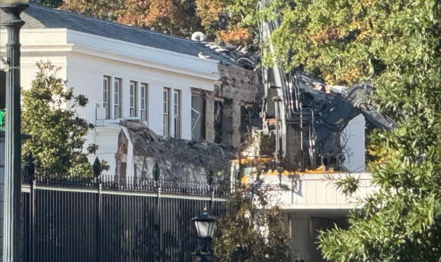 Krahu Lindor i Shtëpisë së Bardhë po shembej këtë të hënë për t’i hapur rrugë sallës së praruar të ballove të Presidentit Donald Trump, një investim me vlerë 250 milionë dollarë. Fotot e publikuara nga...