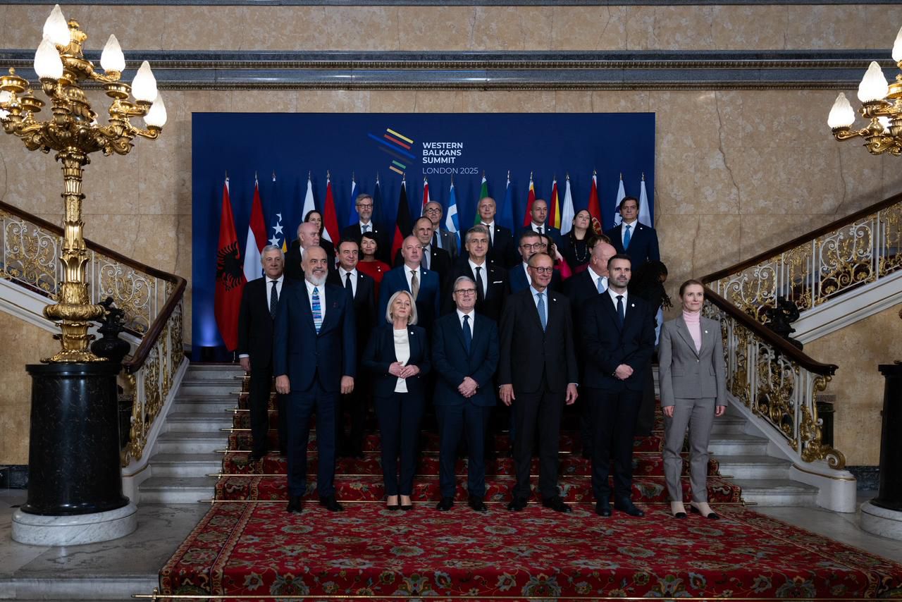 Kryeministri i Shqipërisë, Edi Rama, ka publikuar fotografinë familjare të Samitit të Liderëve të Ballkanit Perëndimor që po mbahet në Londër. Në rend të parë shihet edhe kandelari gjerman, Friedrich Merz.