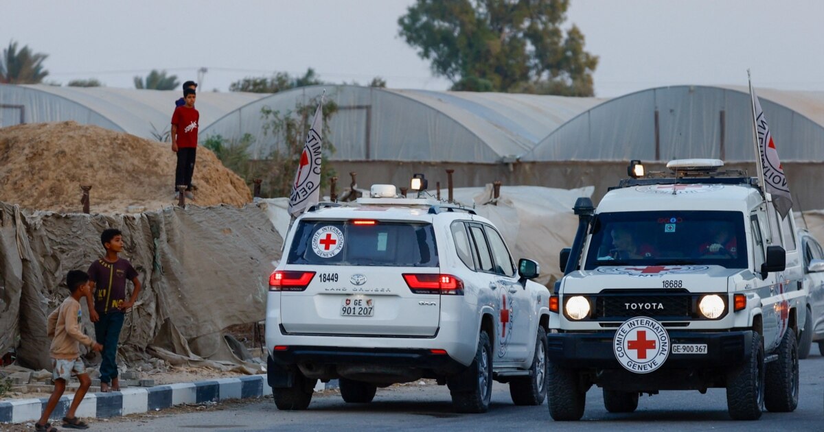 Arkivolet që përmbanin trupat e dy pengjeve izraelite iu dorëzuan Kryqit të Kuq nga Hamasi në Gaza... Arkivolet që përmbanin trupat e dy pengjeve izraelite iu dorëzuan Kryqit të Kuq nga Hamasi në Gaza,...