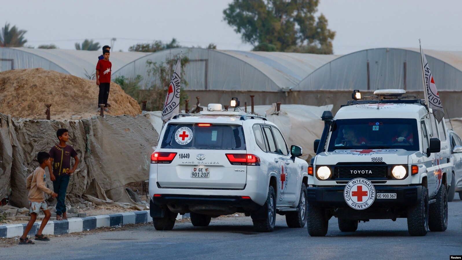 Arkivolet që përmbanin trupat e dy pengjeve izraelite iu dorëzuan Kryqit të Kuq nga Hamasi në Gaza... Arkivolet që përmbanin trupat e dy pengjeve izraelite iu dorëzuan Kryqit të Kuq nga Hamasi në Gaza,...