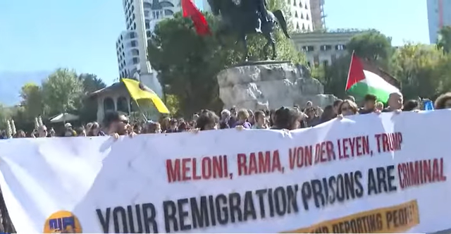 Disa qytetarë dhe aktivistë ndërkombëtarë janë mbledhur sot duke protestuar në Tiranë dhe Lezhë. Kjo protestë po mbahet lidhur me dyvjetorin e marrëveshjes mes Shqipërisë dhe Italisë për ndërtimin e kampeve...