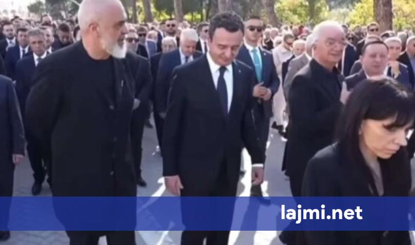 Të dy kryeministrat, Edi Rama dhe Albin Kurti duket se kanë shkrirë akujt mes tyre. Gjatë ceremonisë mortore ku është përcjellë arkëmorti i ish-kryeministrit Fatos Nano, Rama e Kurti shihen duke biseduar...
