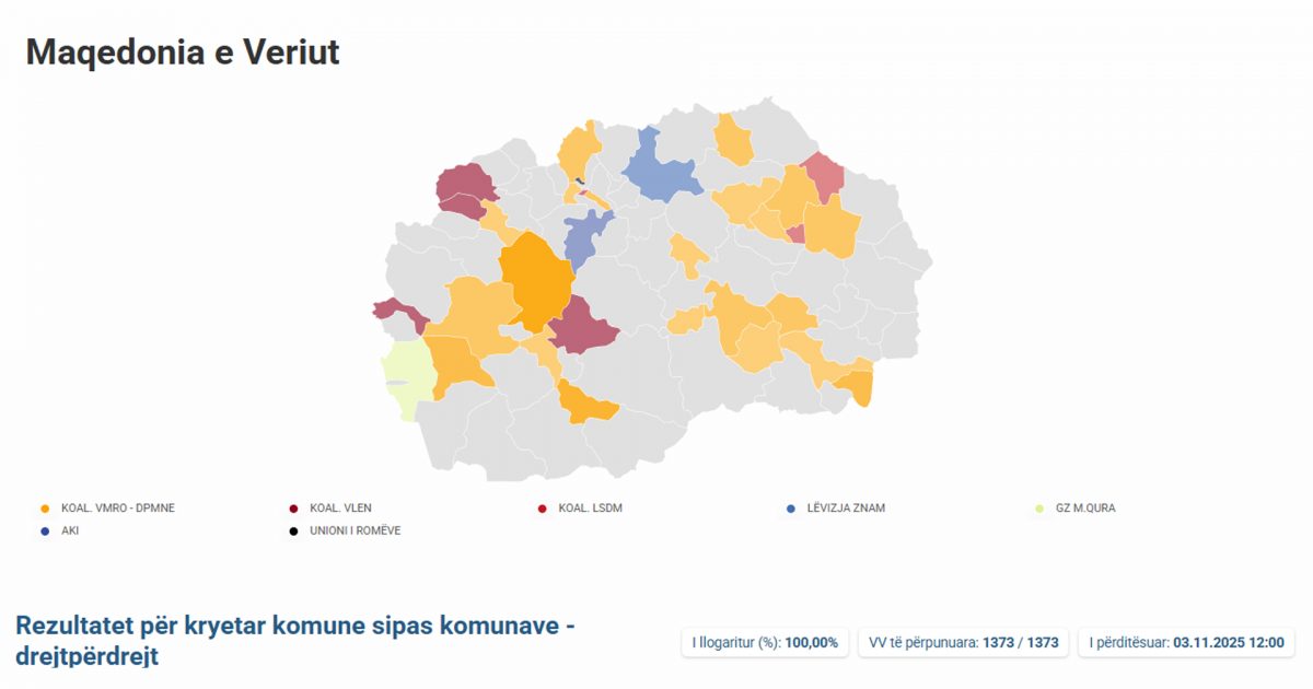 Zgjedhjet lokale 2025 rikonfirmuan shtrirjen e partive politike në Maqedoninë e Veriut. Disa parti i ruajtën bastionet, disa fituan terren të ri, ndërsa disa të tjera humbën. Portalb.mk ju sjell hartën...