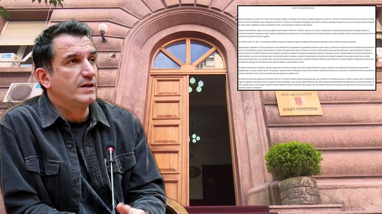 Vendimi i Gjykatës Kushtetuese: Gjykata Kushtetuese në datën 03.11.2025 mori në shqyrtim çështjen me kërkues Erion Veliaj, me objekt shfuqizimin e vendimit nr. 539/2025 të Këshillit të Ministrave për shkarkimin...