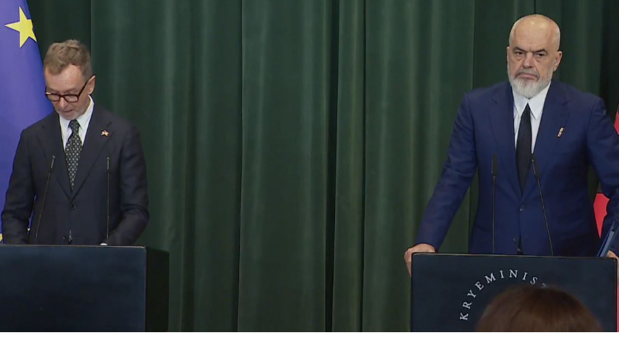 Kryeministri Edi Rama dhe Ambasadori i Bashkimit Europian, Silvio Gonzato po mbajnë një konferencë të përbashkët, pasi Shqipëria merr në dorëzim progres raportin e KE. Gonzato: Më lejoni të them se dje...