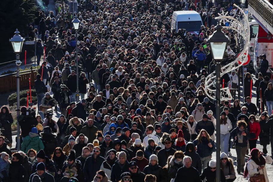 Qindra njerëz mbajtën një marshim të heshtur të dielën për të nderuar viktimat e një zjarri të tmerrshëm të natës së Vitit të Ri në një bar në resortin alpin zviceran të Crans-Montanës. Tragjedia vrau...