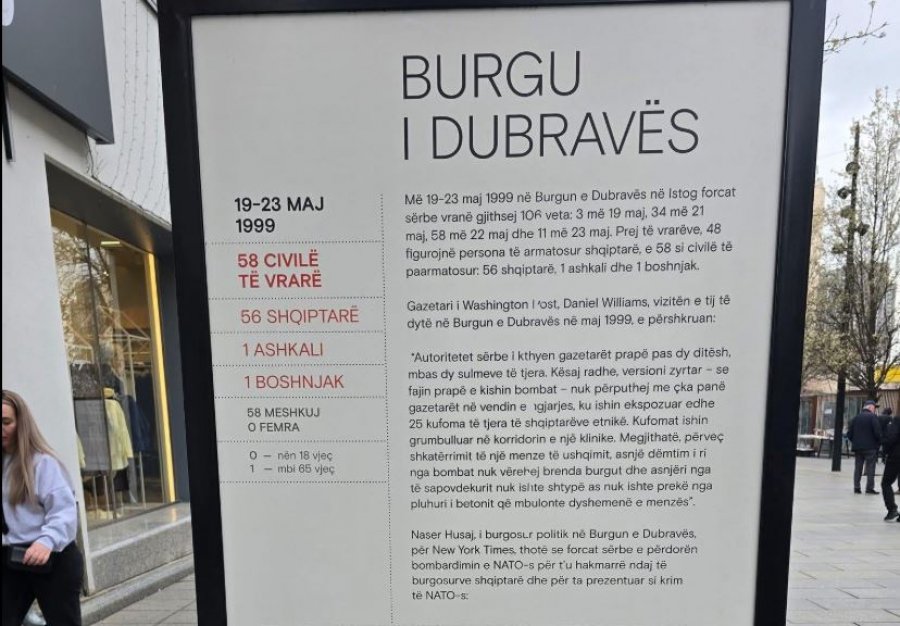 Ekspozita në sheshin e Prishtinës për Masakrat në Kosovë, ka ngjallur kritika të shumta, pasi që aty mes tjerash thuhet se në Masakrën e Dubravës, janë vrarë 48 shqiptarë të armatosur, gjë e cila u cilësua...