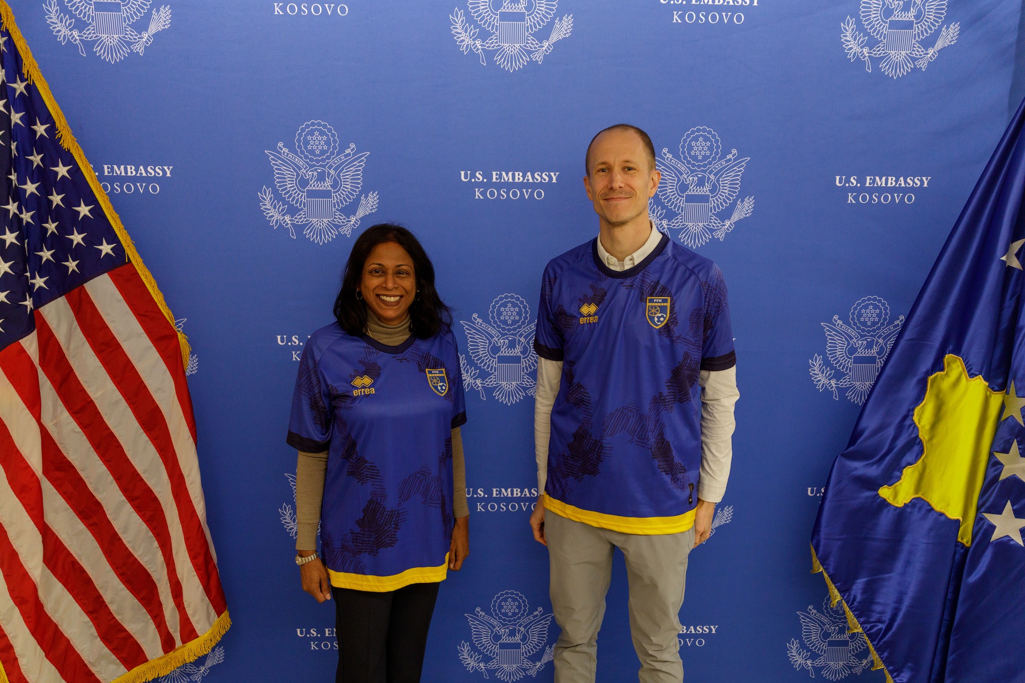 Ambasada e Shteteve të Bashkuara në Kosovë ka publikuar një fotografi ku shihet E Ngarkuara me Punë e Ambasadës në Prishtinë, Anu Prattipati, e veshur me fanellën e kombëtares së Kosovës. “Nga të gjithë...