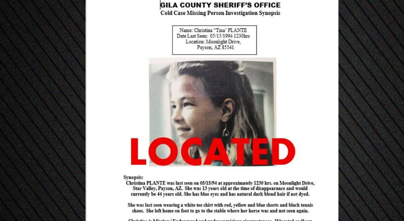 Një grua në Arizona, e cila u zhduk 32 vjet më parë, kur ishte vetëm 13 vjeç, është gjetur gjallë, thanë autoritetet këtë javë. Christina Marie Plante u raportua e zhdukur në maj të vitit 1994 nga Star...