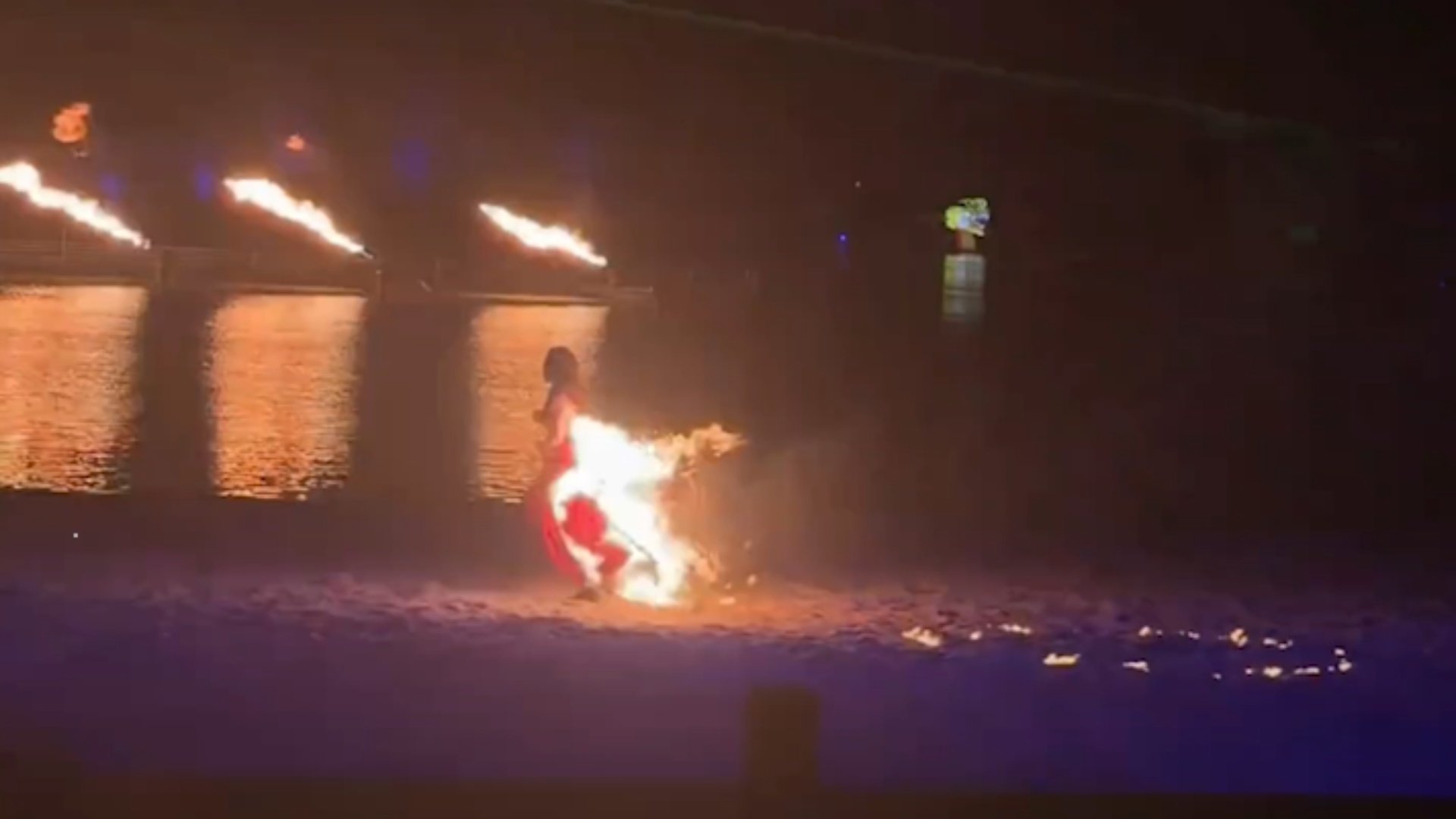 Një balerinë u përfshi nga flakët dhe vrapoi frikshëm drejt një lumi ndërsa performonte një spektakël të rrezikshëm në Kinë. Ngjarja ndodhi në një park natyror në qytetin portual Nantong, ku gruaja po...