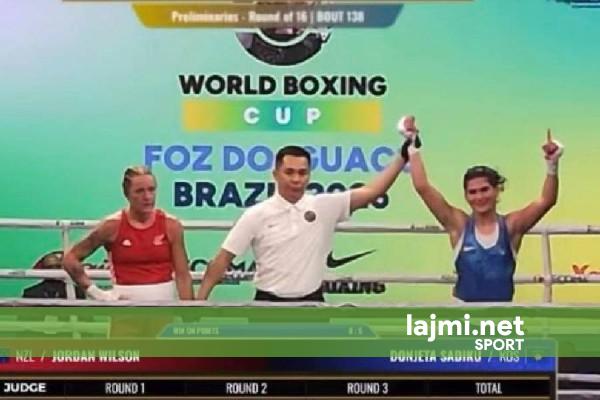 Boksierja Donjeta Sadiku ka fituar bindshëm në meçin e parë në Kupën Botërore që po mbahet në Brazil. Në kuadër të xhiros së dytë në kategorinë deri 60 kilogramë, Donjeta të mërkurën mbrëma u përball me...