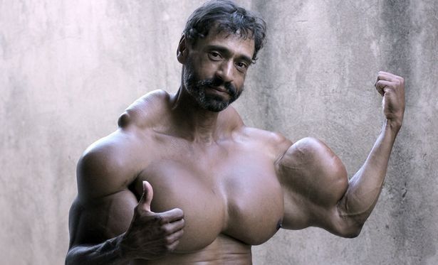 Foto 1 nga 14 Një person i fiksuar pas Hulkut të Pabesueshëm po rrezikon jetën e tij duke injektuar vaj në muskuj. Valdir Segato është i fiksuar pas trupit muskuloz. 48-vjeçari thotë se krahët e tij janë...